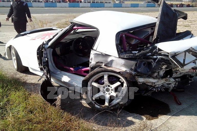 Όλα συνέβησαν στην είσοδο για την ευθεία στο Κ14 όπου έγινε εμπλοκή τριών αγωνιστικών αυτοκινήτων. Όπως θα δείτε από τις εικόνες που δημοσιεύει το zougla.gr, το Honda S2000 έμεινε σχεδόν μισό, ενώ άλλα δύο αγωνιστικά, ένα Skoda Octavia και μία BMW έπαθαν μεγάλες υλικές ζημιές.
