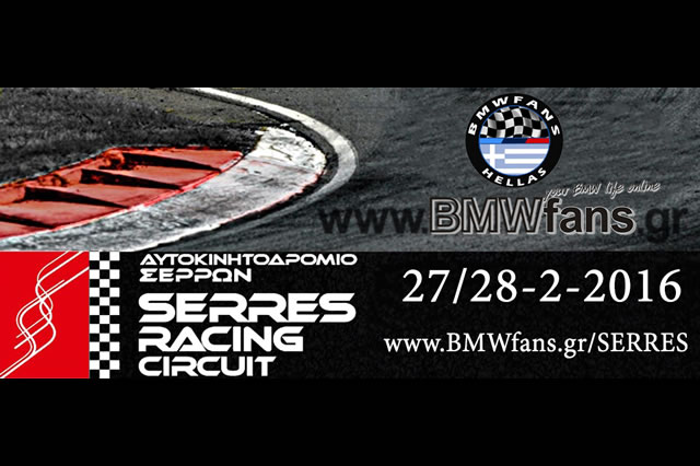Τα μέλη του ελληνικού ιστότοπου www.BMWfans.gr, μια συνεχώς διευρυνόμενη παρέα φίλων BMW απ’ όλη την Ελλάδα, διοργανώνουν ένα 2-ήμερο οδηγικής αυτοκινητιστικής απόλαυσης στο αυτοκινητοδρόμιο των Σερρών, στις 27-28 Φεβρουαρίου.