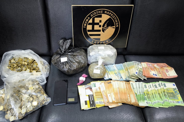 Σε έρευνα που έγινε στην οικία του, με τη συνδρομή και του αστυνομικού σκύλου ανίχνευσης ναρκωτικών ουσιών «Roxy» της Διεύθυνσης Αστυνομίας Σερρών, βρέθηκαν και κατασχέθηκαν: