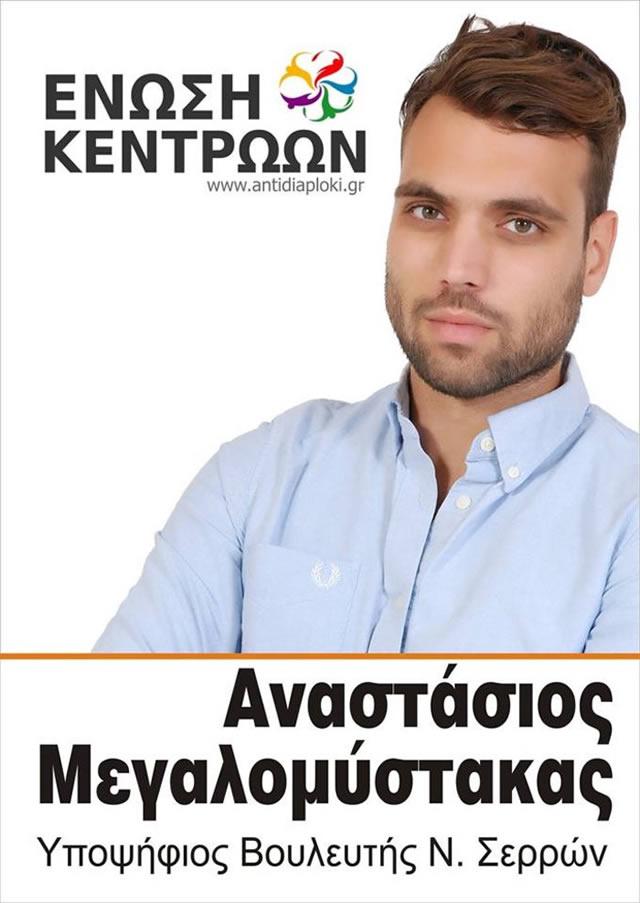 Ο 27χρονος Τάσος Μεγαλομύστακας είναι ο μόνος βουλευτής που εξέλεξε η Ενωση Κεντρώων, εκτός λεκανοπεδίου και Θεσσαλονίκης.