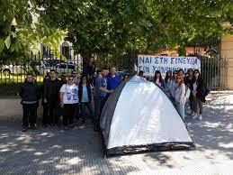 Στήνοντας σκηνές έξω από το υπουργείο Μακεδονίας-Θράκης, στην οδό Αγίου Δημητρίου, στη Θεσσαλονίκη, διαμαρτυρήθηκαν το πρωί εργαζόμενοι με πεντάμηνες συμβάσεις ή απασχολούμενοι μέσω προγραμμάτων του ΕΣΠΑ στους Οργανισμούς Τοπικής Αυτοδιοίκησης.