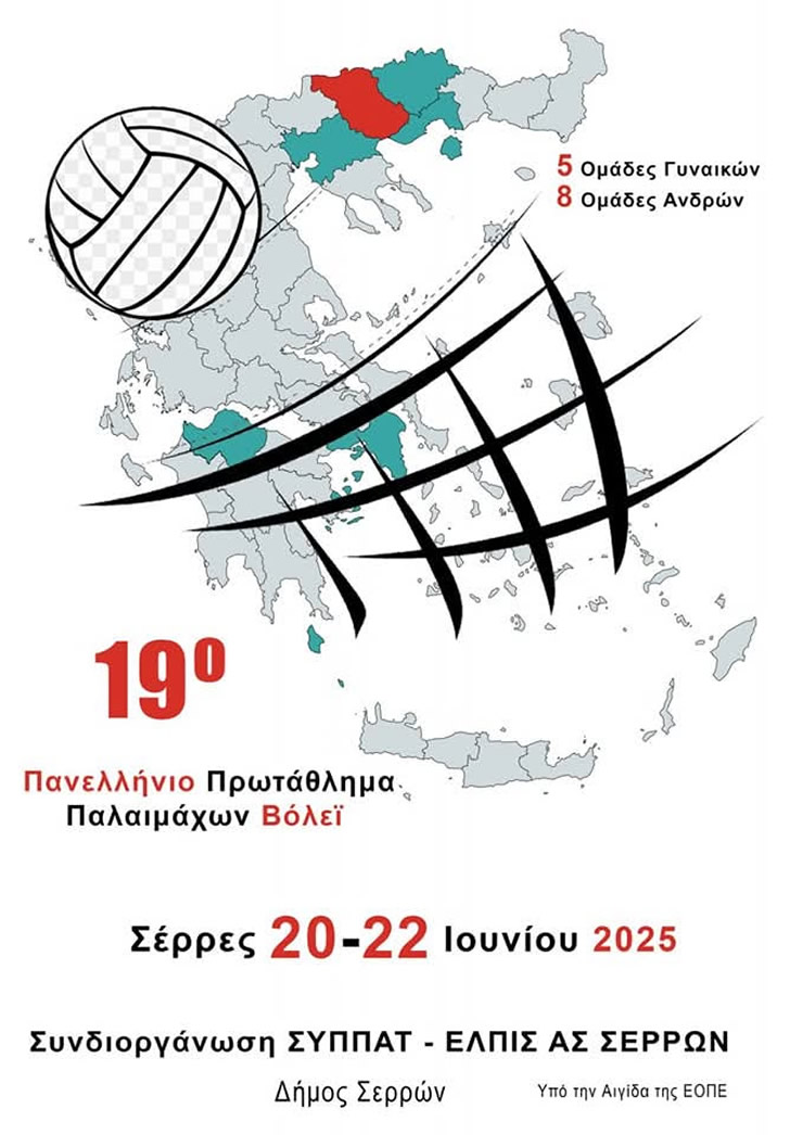 Οι Σέρρες ετοιμάζονται να υποδεχθούν για ακόμη μία φορά αθλήτριες και αθλητές του ελληνικού βόλεϊ, φιλοξενώντας το 19ο Πανελλήνιο Πρωτάθλημα Παλαιμάχων Βόλεϊ, από τις 20 έως τις 22 Ιουνίου 2025.