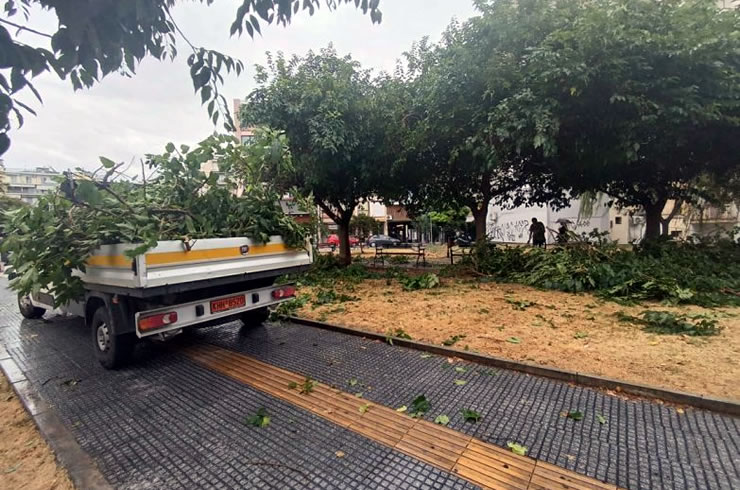 Τα συνεργεία της Αντιδημαρχίας Πρασίνου το πρωί της Πέμπτης 31 Ιουλίου κούρεψαν και κλάδεψαν το πάρκο στην παλιά δημοτική αγορά.