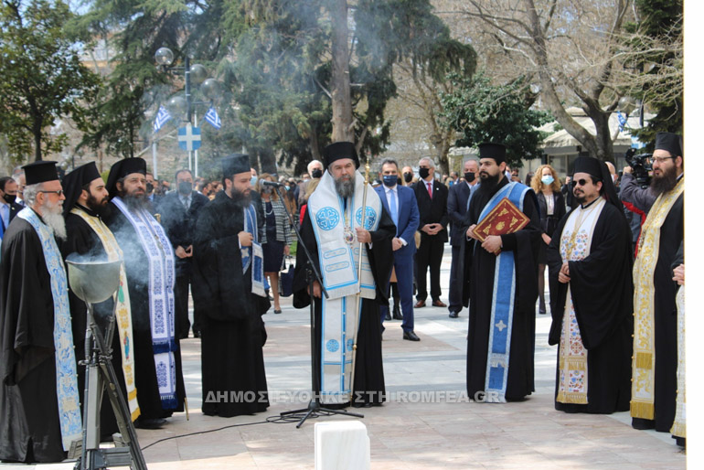 Μετά το πέρας της Δοξολογίας, εψάλη επιμνημόσυνη δέηση, κατετέθησαν στέφανοι, τηρήθηκε ενός λεπτού σιγή στη μνήμη όλων όσων θυσιάσθηκαν για την ελευθερία της πατρίδος μας και εψάλη ο Εθνικός μας Ύμνος, ενώπιον του ανδριάντος του Σερραίου ήρωος της Ελληνικής Επαναστάσεως Αρχιστρατήγου Εμμ. Παπά, στον χώρο της πλατείας «Ελευθερίας» Σερρών.