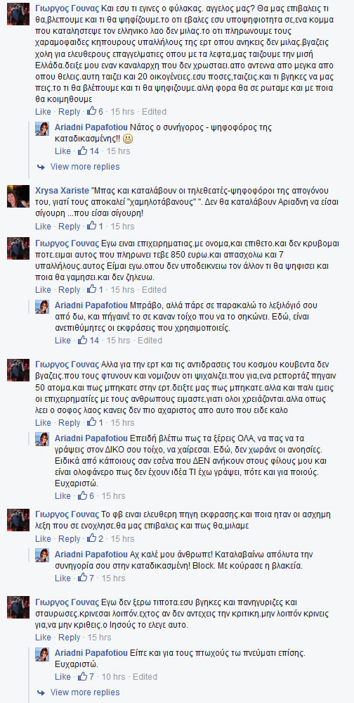 Διαβάστε το σχόλιο της Αριάδνης Παπαφωτίου όπως το δημοσίευσε αυτούσιο στο προσωπικό της λογαριασμό:
