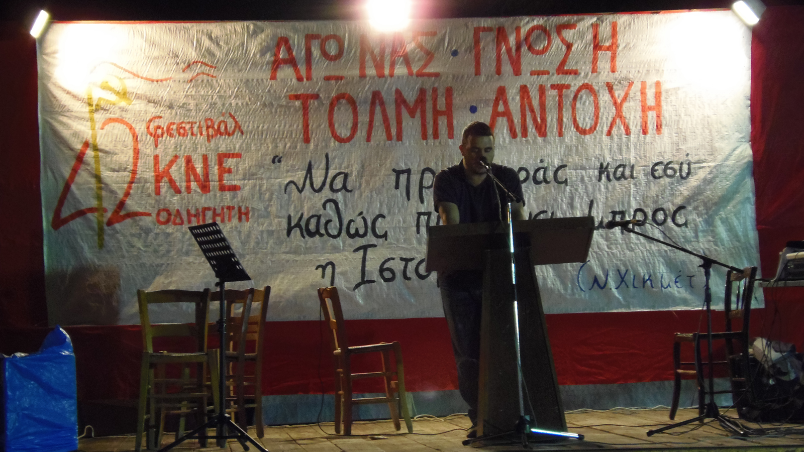 « Είμαστε αισιόδοξοι… το ξέρουμε, το βλέπουμε. Μέρα με τη μέρα τούτο το σύστημα γερνάει, τούτο το σύστημα σαπίζει, εμείς συγκεντρωνόμαστε, δυναμώνουμε, αντιστεκόμαστε και οργανώνουμε την τελική επίθεση. Δυναμώνουμε τη γροθιά που θα τρίξει, θα τσακίσει και θα πετάξει τα σάπια θεμέλια του βάρβαρου καπιταλιστικού συστήματος.