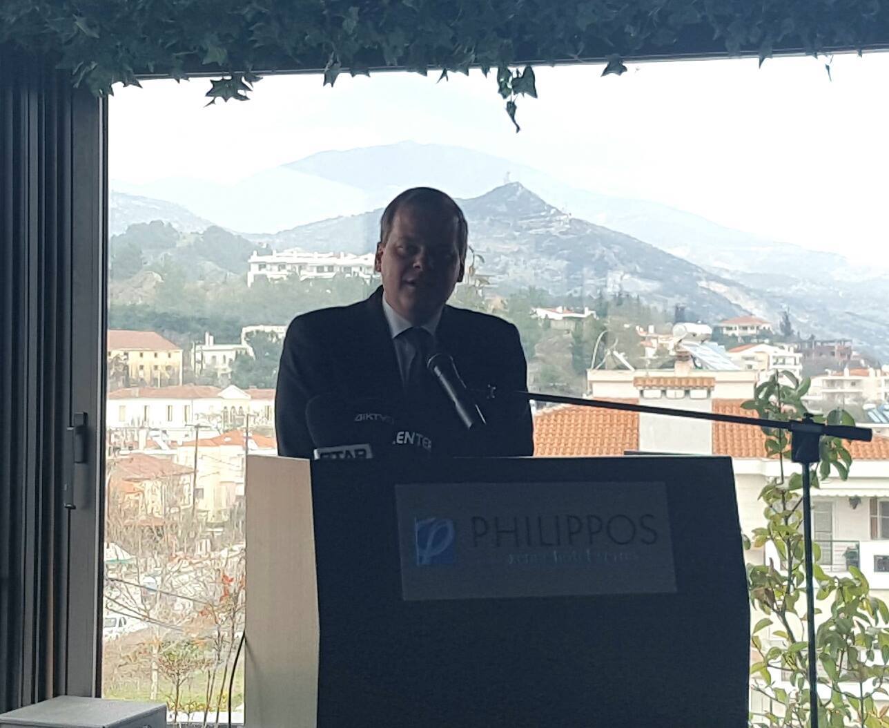 Τον ομιλητή προσφώνησε ο βουλευτής Σερρών κ. Κώστας Καραμανλής εξαίροντας την πολιτική οξύτητα αλλά και το γνωστικό υπόβαθρο του κ. Μηταράκη.