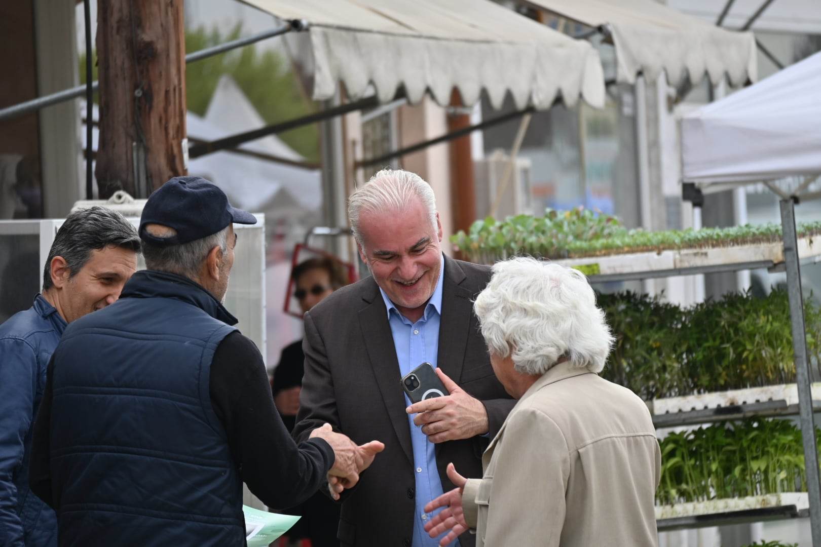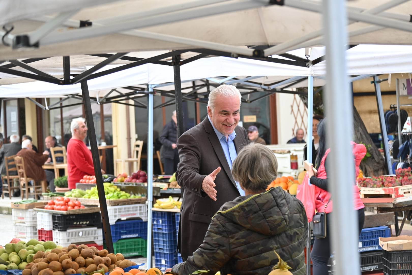 Πιο συγκεκριμένα, ο κ.Βέρρος επισκέφθηκε την Λαϊκή Αγορά της Μαυροθάλασσας, όπου είχε την ευκαιρία να συνομιλήσει με παραγωγούς και μικροπωλητές, για θέματα που τους απασχολούν, όπως αυτά του πρωτογενούς τομέα αλλά και της μεταποίησης.