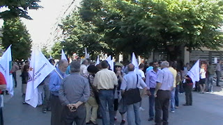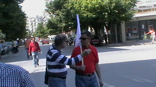 Το Εργατικό Κέντρο Σερρών που έχει καταντήσει γραφειοκρατικός μηχανισμός διεκπεραίωσης προσλήψεων ανέργων συμβασιούχων, και ρουσφετολογικός συγχρόνως, που κάνει τα στραβά μάτια για την κατάργηση των Συλλογικών Συμβάσεων, για την αθλιότητα στην οποία ζουν και εργάζονται σήμερα οι εργαζόμενοι, που σηκώνει φωνή μόνο στους συμβασιούχους των πεντάμηνων που διεκδικούν τα δεδουλευμένα τους, αντί να υψώσει φωνή στην εργοδοσία και στα πολιτικά της αφεντικά, πήγε να δείξει τη δύναμή του στο ταξικό κίνημα. Βρήκε, νόμισε, τον πραγματικό του εχθρό. Γελάστηκε όμως αν νόμισε οτι θα περάσει έτσι κάτι τέτοιο. Θέλοντας και μη άλλαξε πορεία μπροστά στην ανυποχώρητη απόφαση των συγκεντρωμένων του ΠΑΜΕ να διακόψουν την εκδήλωσή τους. Τέτοιο τείχος θα βρίσκουν όλο και πιο τακτικά μπροστά τους όσο θα συνεχίσουν να υπηρετούν εντολές αφεντικών και κυβερνήσεων του κεφαλαίου. Να το καταλάβουν καλά οτι το ΠΑΜΕ δεν είναι για τα δόντια τους.
