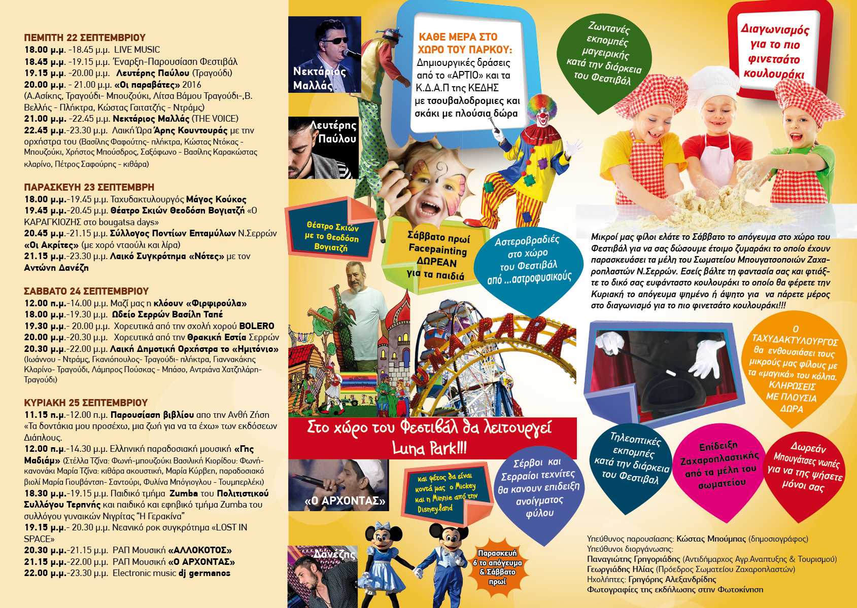 Παράλληλα με η έκθεση θα πλαισιωθεί από μία γιορτή με μουσική, χορούς από πολιτιστικούς συλλόγους, τραγούδια από Σερραϊκά και σερβικά συγκροτήματα και ξυλοπόδαρους. Τέλος στο χώρο έχει στηθεί και ένα υπαίθριο λούνα πάρκ για την ψυχαγωγία των μικρών παιδιών.