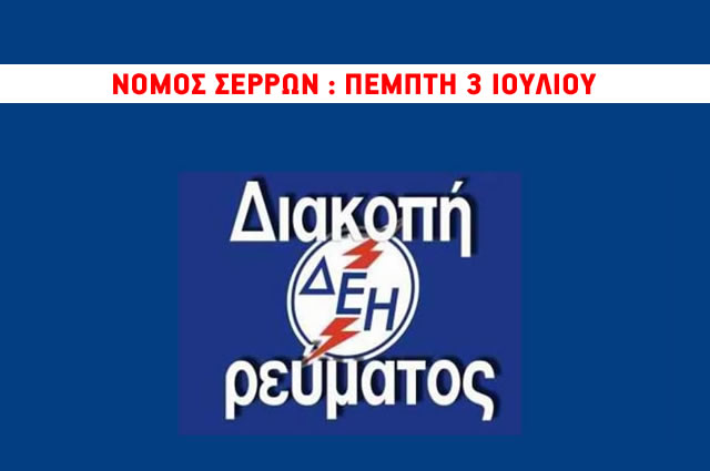 Το ενδεικτικό πρόγραμμα των διακοπών ρεύματος για την Πέμπτη 3 Ιουλίου το μεσημέρι σε όλη την ηπειρωτική χώρα, λόγω της απεργίας στη ΔΕΗ, ανακοίνωσε ο ΔΕΔΔΗΕ: