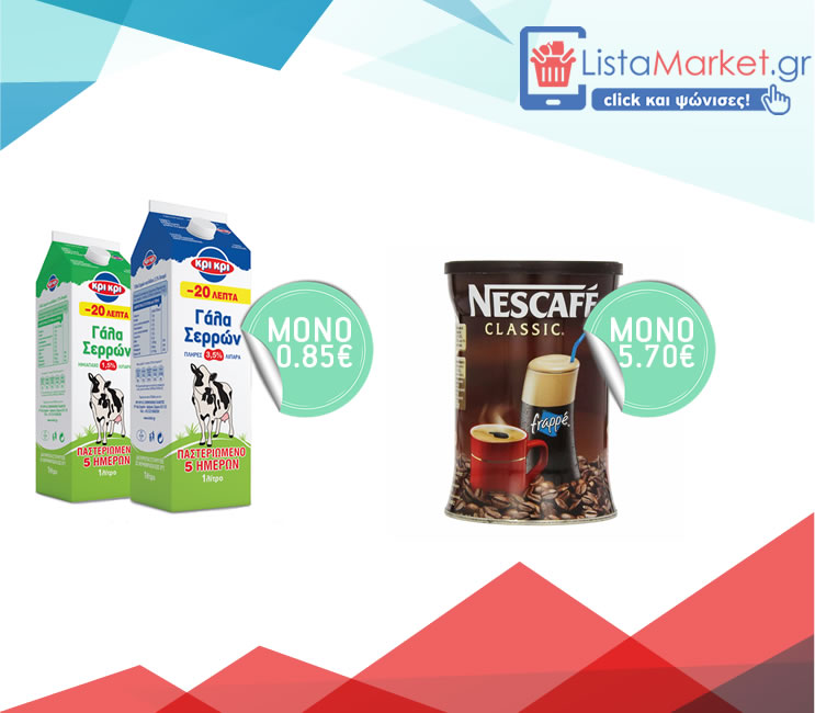 Τώρα το ΓΑΛΑ ΚΡΙΚΡΙ μόνο 0,85€ και το Nescafe 200gr μόνο 5,70€