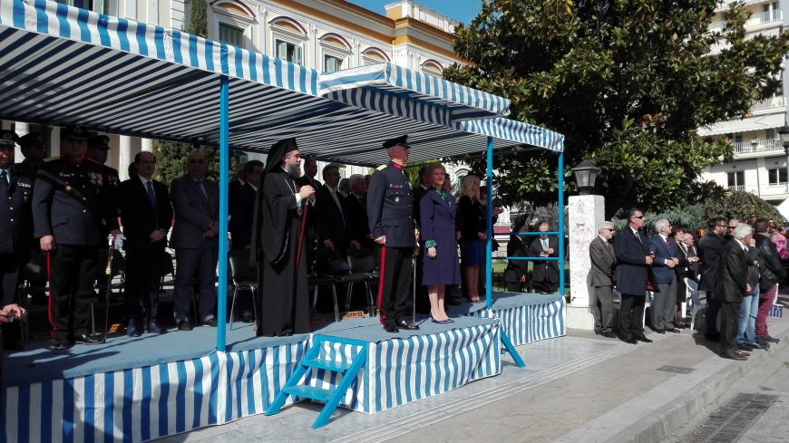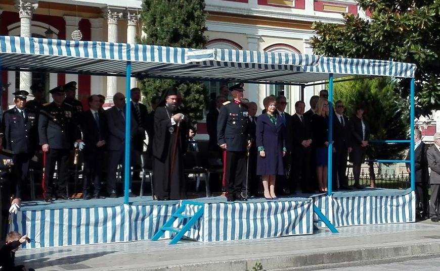 Στην παρέλαση, παρέστη ως εκπρόσωπος της κυβέρνησης, η υφυπουργός Μακεδονίας Θράκης Μαρία Κόλλια Τσαρουχά, ενώ στην εξέδρα των επισήμων βρίσκονταν ο Μητροπολίτης Σερρών και Νιγρίτης Θεολόγος, οι Σερραίοι βουλευτές Κώστας Καραμανλής και Φωτεινή Αραμπατζή, ο Αντιπεριφερειάρχης Σερρών, ο Δήμαρχος Πέτρος Αγγελίδης, ο συνταγματάρχης του 10ου Συντάγματος Πεζικού Σερρών Ιωάννης Γκουτζουρέλας και πολλοί ακόμη εκπρόσωποι φορέων.