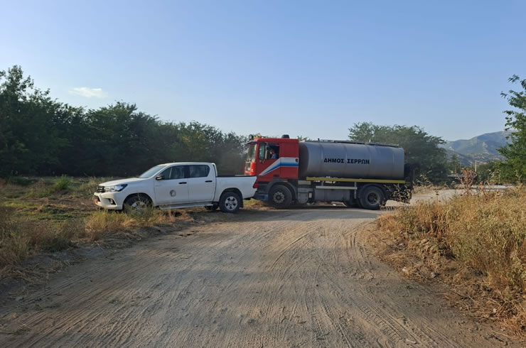 Ο Δήμος Σερρών ανταποκρίθηκε άμεσα, συνδράμοντας στο έργο της κατάσβεσης, με 2 υδροφόρες και χωματουργικά μηχανήματα. Με την καθοδήγηση των αρμόδιων υπηρεσιών, δημιουργήθηκαν αντιπυρικές ζώνες, με στόχο την αποτροπή της εξάπλωσης της φωτιάς προς κατοικημένες περιοχές και επιχειρήσεις. Επίσης, συνέδραμε και η υδροφόρα του Αυτοκινητοδρομίου Σερρών.