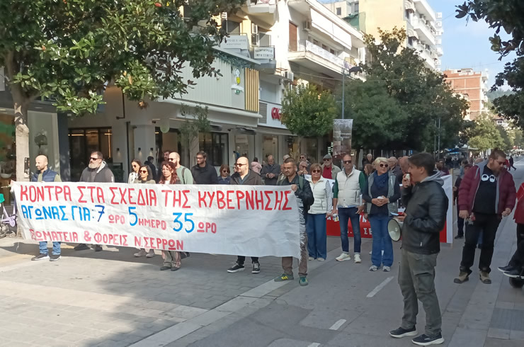 Με συνθήματα κατά του νέου εργασιακού νομοσχεδίου του υπουργείου Εργασίας εργαζόμενοι από σωματεία και φορείς της Π.Ε. Σερρών πραγματοποίησαν το πρωί της Τρίτης 14/10 συγκέντρωση στην πλατεία Ελευθερίας και στη συνέχεια έκαναν πορεία στο κέντρο της πόλης.
