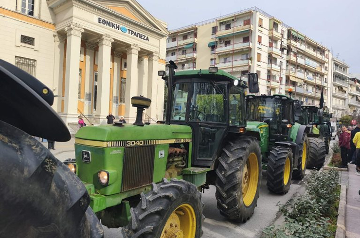 Οι αγρότες με επτά τρακτέρ ξεκίνησαν από το πρώην Στρατόπεδο Παπαλουκά και διασχίζοντας τους κεντρικούς δρόμους της πόλης έφτασαν στις 11:00 στην πλατεία Ελευθερίας.