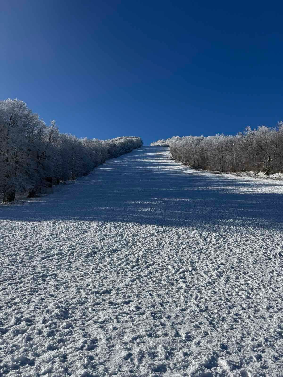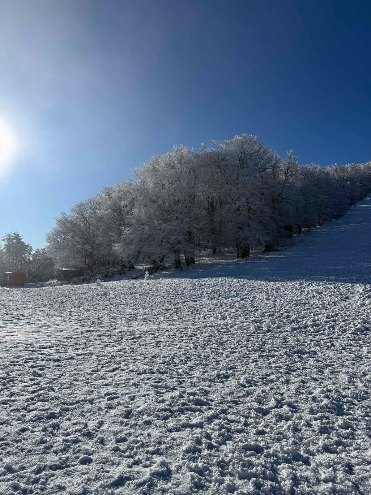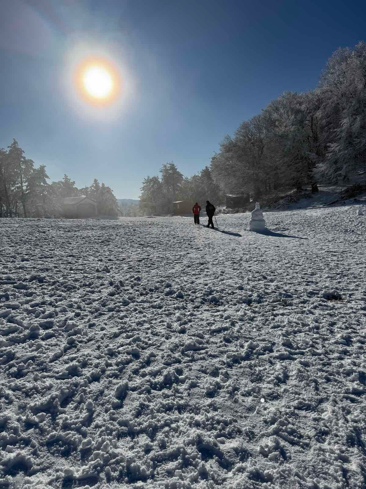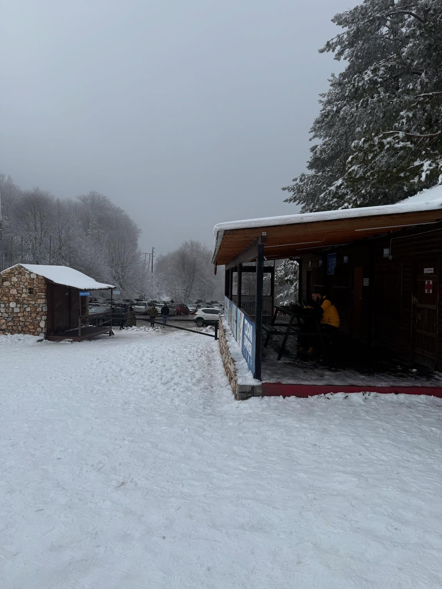 Στα λευκά το καταφύγιο και το σαλέ, που φιλοξένησαν παρέες και οικογένειες, λάτρεις του χειμερινού τοπίου.