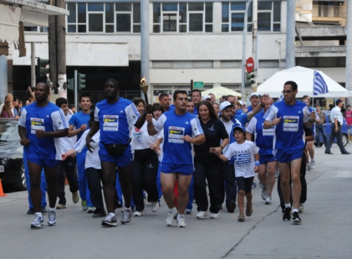Ειδικότερα, τρεις αθλητές ακολούθησαν την προγραμματισμένη διαδρομή της λαμπαδηδρομίας σε κεντρικές οδούς της πόλης (Βενιζέλου, Ερμού, Σολωμού, Παπαπαύλου και Εθν. Αντίστασης), μέχρι την κεντρική πλατεία, όπου-μπροστά στον ανδριάντα του Εμμανουήλ Παπά-είχε στηθεί ο βωμός, στον οποίο μεταλαμπάδευσε την ολυμπιακή φλόγα ο αθλητής Κώστας Γκαρίπης.
