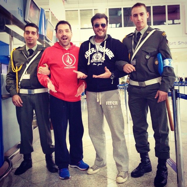 Τα δύο καλά φιλαράκια πήγαν μέχρι το αεροδρόμιο, όπου εκεί όλο και κάποια σκανδαλιά θα έκαναν αφού σύμφωνα με την φωτογραφία που πόσταρε πριν λίγη ώρα ο Λάμπης Λιβιεράτος στο Facebook τους συνέλαβαν οι στρατονόμοι. Kαι για όσους δεν μπορούν να το αντιληφθούν (ναι, υπάρχουν και τέτοιοι) φυσικά είναι χιουμοριστική η φωτογραφία και θα περεβρεθούνε κανονικά στην πόλη μας και στο γενέθλιο πάρτυ του Volta για τα 7 χρόνια όπως μαθαίνουμε και από την ιστοσελίδα του Volta εδώ