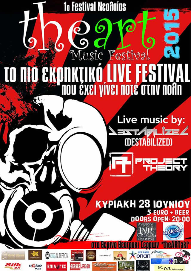Στο Θερινό Θεατράκι Σερρών την Κυριακή 28 Ιουνίου,η εξαιρετικά εκρηκτική μπάντα " Destabilized " που με την παρουσια τους παραπέμπουν σκηνικά στον Skrillex και τους Prodigy και η δυναμική Rapcore μπάντα " Project Theory " σαν μια ελληνικη έκδοση των Linkin Park, έρχονται για την 1η συνάντηση νέων,φοιτητών και μαθητών δήμου Σερρών. Το αποτέλεσμα θα ναι εκρηκτικό και θα μεινει αξέχαστο σε όποιον παρευρεθεί και γινει και αυτος ενα κομματι του 1ου φεστιβαλ νεολαίας!