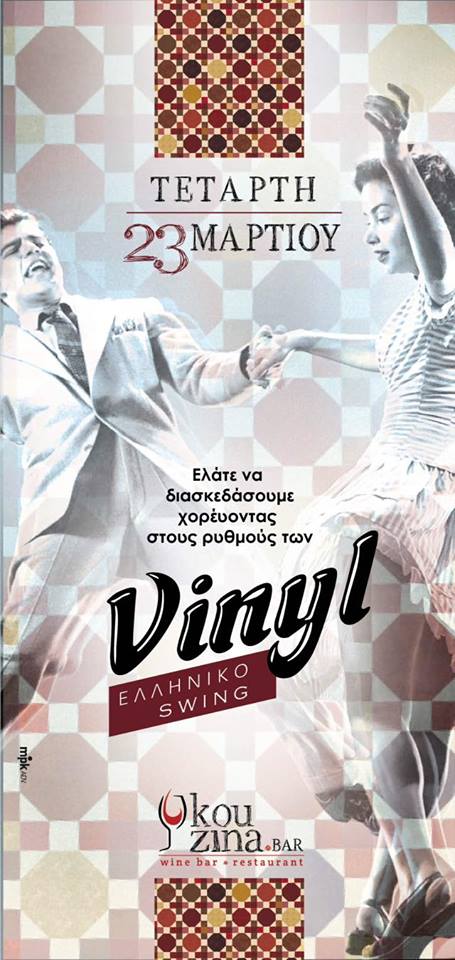 Μας προσκαλεί να διασκεδάσουμε χορεύοντας στους ρυθμούς των Vinyl, με ελληνικό κ ξένο swing παντρεμένο με νότες λάτιν κ τζαζ!Μην το χάσετε...