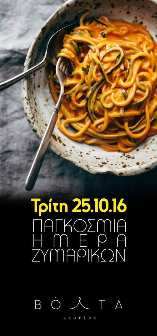 Η 25η του Οκτώβρη έχει οριστεί ως η Παγκόσμια Ημέρα Ζυμαρικών και επειδή όλοι μας καταβάθος είμαστε... μακαρονάδες θα πάμε στο Βόλτα να το γιορτάσουμε με το πιο ξεχωριστό μενού!