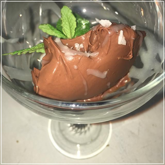 Για το τέλος αφήνουμε το γλυκό... Αχ, το γλυκό... Όσο παράξενος μας φάνηκε ο συνδυασμός της σοκολάτας με το κόκκινο πιπέρι και το χοντρό αλάτι, τόσο “βουτούσαμε” το κουτάλι στο ποτήρι θέλοντας να το γευτούμε ξανά και ξανά και ξανά... Just perfect!