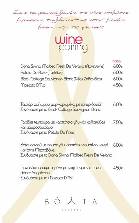 Η Πέμπτη μας αλλάζει για λίγο και παίρνει χρώμα και γεύση κρασιού. Wine Pairing για σήμερα στο Βόλτα και τα πιο εκλεκτά κρασιά από Αυστραλία,Ν.Ζηλανδια,Γαλλία και Ιταλία συνοδεύονται από τα πιο γευστικά πιάτα και δημιουργούν άλλη μια ιδιαίτερη βραδιά στο αγαπημένο μας μαγαζί!