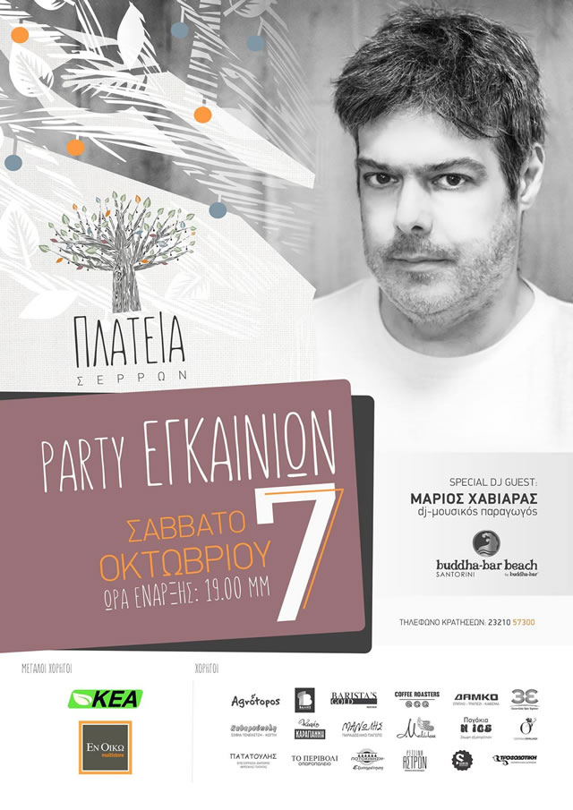 Από τις 19:00 κι έπειτα ο διεθνής Dj Mario DreamersInc Chaviaras αφήνει για λίγο τα Buddha Bar Λονδίνου, Μυκόνου και Σαντορίνης, ανεβαίνει στις Σέρρες και παίρνει θέση στα decks για να μας ταξιδέψει στους ήχους της lounge & house μουσικής του.