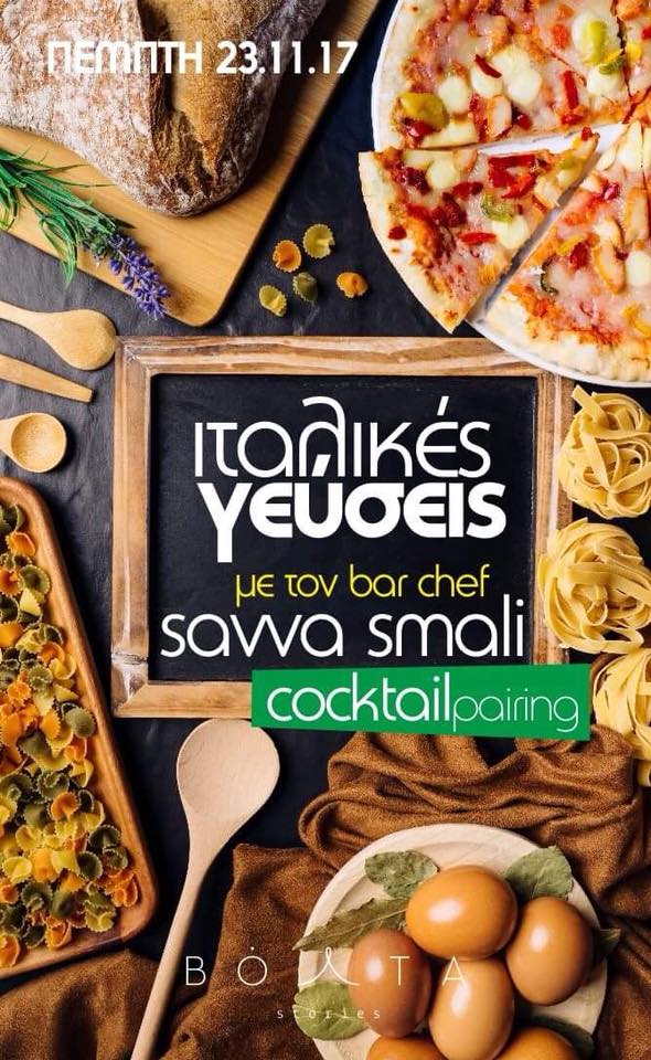 Οι ιταλικές γεύσεις πρωταγωνιστούν στο αποψινό Cocktail & Food Pairing και ανυπομονούμε να δούμε τι μας έχουν ετοιμάσει πάλι γιατί μπορεί το μενού να φαίνεται κάπως προβλέψιμο, οι άνθρωποι του Βόλτα, όμως, δεν μας έχουν συνηθίσει σε τετριμμένες καταστάσεις, επομένως δεν μπορούμε να είμαστε σίγουροι για το τι θα γευτούμε! Για το μόνο που μπορούμε να είμαστε σίγουροι είναι ότι θα μας αρέσει.
