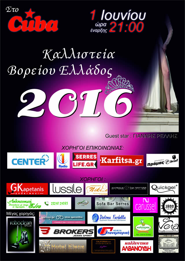 Την Τετάρτη 1 Ιουνίου 2016, Πανέμορφες Καλλονές θα παρελάσουν σε ένα διαγωνισμό που έχει γίνει θεσμός. Όλα τα φώτα, όλη η λάμψη στην κοιλάδα των Σερρών στο Cuba σε ένα μοναδικό show αφιερωμένο στην ομορφιά.