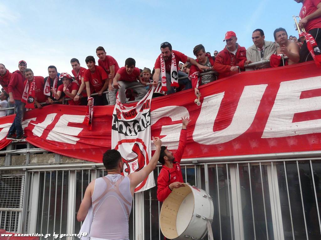 Η εικόνα του ματς, δεν άλλαξε στο δεύτερο ημίχρονο. Μάλιστα, σε μια πολύ ωραία και σπάνια εικόνα στα ελληνικά γήπεδα, οι οπαδοί των δυο ομάδων στην ανάπαυλα αντάλλαξαν και κασκόλ.