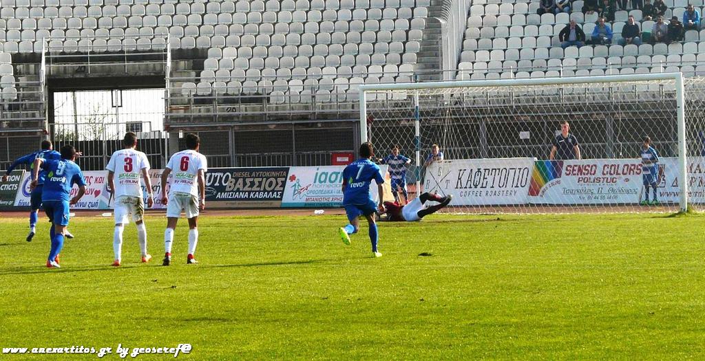 Το ματς στην Καβάλα ήταν πραγματικό ντέρμπι, με τους γηπεδούχους να έχουν την πρωτοβουλία των κινήσεων και να αγγίζουν το προβάδισμα, χάνοντας τρομερή ευκαιρία, όταν στο 35′ κέρδισαν πέναλτι, με τον Διαμαντίδη να εκτελεί και τον Ανδρούτσο να … μπλοκάρει την μπάλα!!!