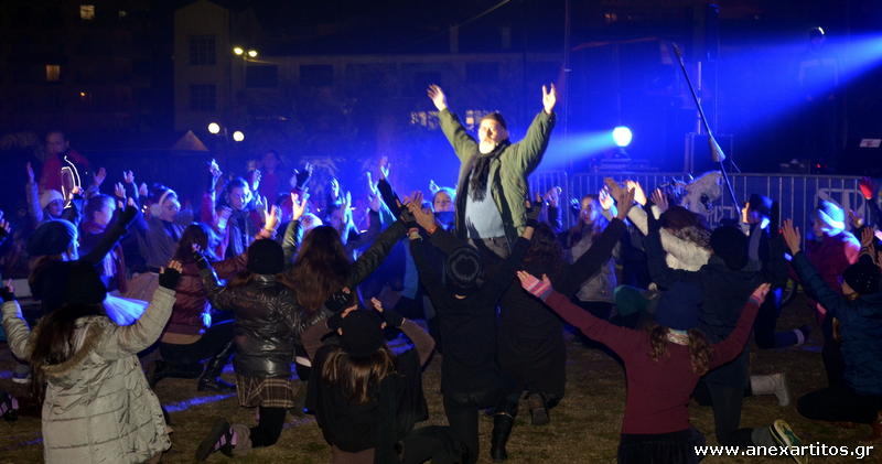Η παράσταση της έναρξης, υπο την καθοδήγηση του σκηνοθέτη κ.Μωραϊτη, ξεκίνησε με χορεύτριες από την σχολή μπαλέτου της Ναταλί Θεοδωρίδου-Κανελίδου και στη συνέχεια από τα τμήματα χορού της ΚΕΔΗΣ, με θεματολογία που παρέπεμπε  στο «κοριτσάκι με τα σπίρτα». Στη συνέχεια εμφανίζεται ο… Δον Κιχώτης με τον μόνιμο συνοδό του Πάντσο (από την παιδική θεατρική παράσταση του ΔΗΠΕΘΕ Σερρών), ο οποίος παίρνοντας ένα παιδάκι από τον χορό το οδηγεί στο χριστουγεννιάτικο δέντρο όπου το υποδέχεται ο…  Δήμαρχος και ο οποίος του προτείνει να απευθύνουν μαζί τις ευχές στον κόσμο.