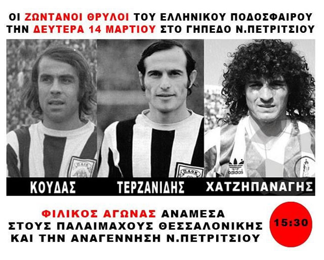 Οι ζωντανοί θρύλοι του Ελληνικού Ποδοσφαίρου τη Κ.Δευτέρα 14 Μαρτίου στο γήπεδο του Νέου Πετριτσίου.
