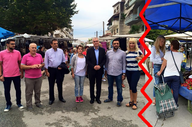 Στον χώρο της λαϊκής αγοράς των Σερρών βρέθηκε το πρωι της Τρίτης 8 Σεπτεμβρίου κλιμάκιο υποψήφιων βουλευτών και στελεχών της ΝΔ Σερρών .Το παρόν έδωσαν οι υποψήφιοι βουλευτές κ κ Μ Βλάχβεης , Θεοφ Λεονταρίδης , Στ Καλαποτλής και οι υποψήφιες βουλευτίνες κκ Φωτ Βαδικόλια και Εβ Τσιαπάρα .Επίσης το παρών έδωσε ο πρόεδρος της ΝΟΔΕ Σερρών κ Καμπούρης και κομματικά στελέχη .