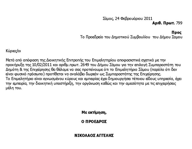 Δείτε το έγγραφο από το Επιμελητήριο Σάμου προς το Δήμο Σάμου
