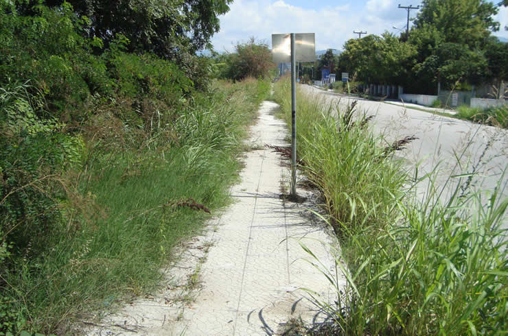 Πριν από λίγες ημέρες περίμενα φίλη μου, η οποία ταξίδευε με το τρένο και πήγα στο Σταθμό του ΟΣΕ (σσ Τέρμα οδού Μεραρχίας) για να την περιμένω. Η εικόνα των κατά τα άλλα ευρύχωρων πεζοδρομίων, αμέσως μετά τη διασταύρωση προς Νιγρίτα απογοητευτική, γιατί απλώς δεν υπήρχαν τα πεζοδρόμια.
