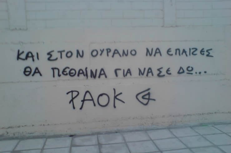 Φιλικές συμβουλές προς τα πιτσιρίκια που έγραψαν το αισχρό σύνθημα στον τοίχο του 4ου Γυμνασίου-Λυκείου στις Σέρρες, χρησιμοποιώντας το όνομα του ΠΑΟΚ.Καταρχάς είστε πιτσιρίκια ακόμη.