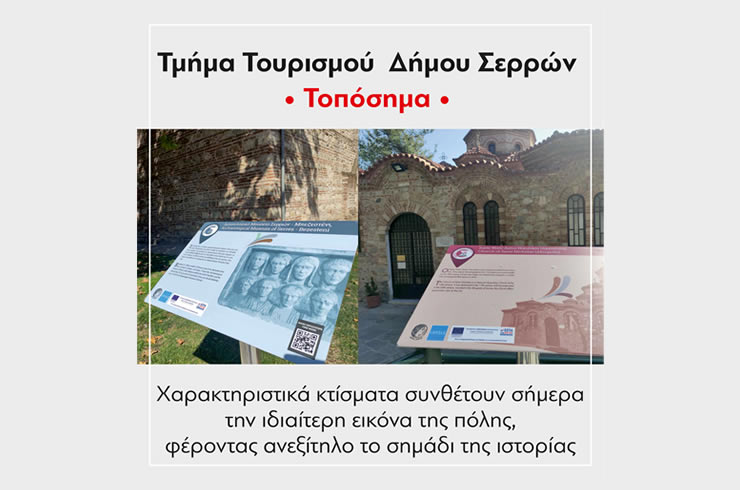 Τις τελευταίες ημέρες τοποθετήθηκαν σε αρκετά σημεία τουριστικού ενδιαφέροντος της πόλης Σερρών τοπόσημα. Στηρίζονται πάνω σε ωραίες, αλουμινένιες βάσεις και είναι γραμμένες σε ελληνικά και αγγλικά σύντομες περιγραφές με φωτογραφία αλλά και με QR Code!