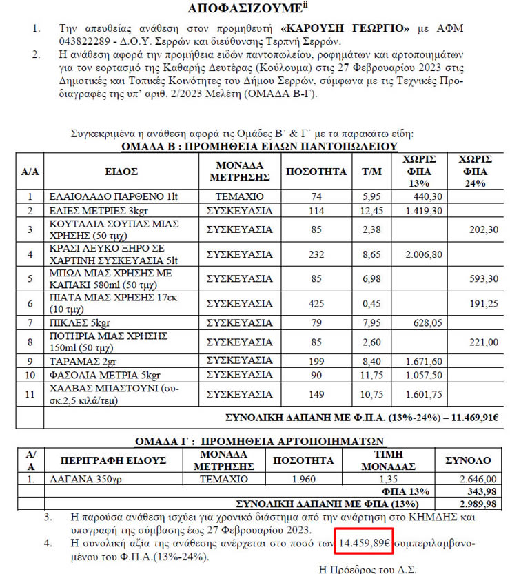 Με μια πρώτη ανάγνωση οι τιμές και οι ποσότητες φαίνονται φυσιολογικές αν συνυπολογίσουμε πως οι προμήθειες περιλαμβάνουν και τα χωριά του Δ.Σερρών που προμηθεύτηκαν τα απαραίτητα Σαρακοστιανά