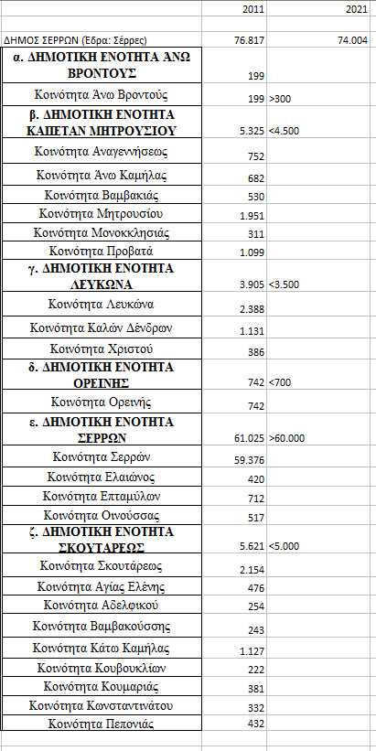 Με την επισημοποίηση των αποτελεσμάτων του μόνιμου πληθυσμού του Δήμου Σερρών σε επίπεδο Δημοτικής Ενότητας και Δημοτικής Κοινότητας, αρχίζουν οι πραγματικές αναλύσεις. Έως τότε εκτιμήσεις. Μεταξύ σφύρας και άκμονος.
