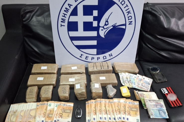 Σε έρευνα που έγινε στο όχημα που επέβαιναν, με τη συνδρομή και του αστυνομικού σκύλου ανίχνευσης ναρκωτικών «Roxy» της Διεύθυνσης Αστυνομίας Σερρών, βρέθηκαν και κατασχέθηκαν: