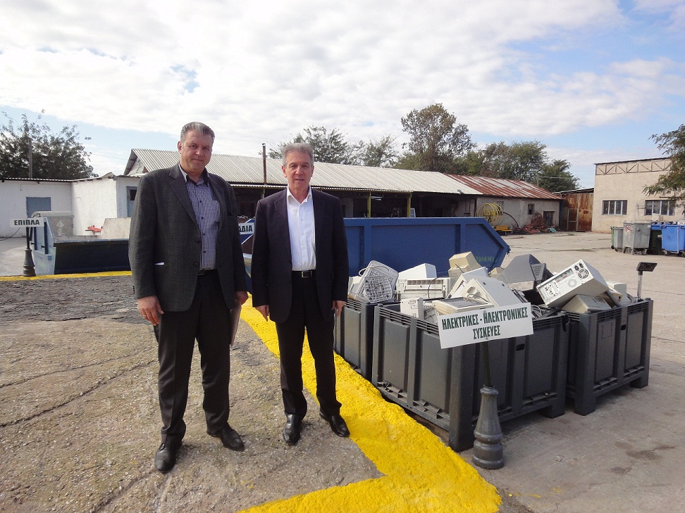 Ο Δήμαρχος Σερρών Πέτρος Αγγελίδης με τον Εντεταλμένο Δημοτικό Σύμβουλο για την Καθαριότητα Παντελή Χράπα επισκέφτηκαν το αμαξοστάσιο του Δήμου Σερρών την Παρασκευή 30-10-2015. Αφορμή της επίσκεψης υπήρξε η έναρξη της λειτουργίας του πρώτου “Πράσινου Σημείου” στο Δήμο Σερρών.