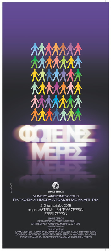 Στις 3 του Δεκέμβρη με αφορμή την Παγκόσμια Ημέρα Ατόμων με Αναπηρίες, ο Δήμος Σερρών και η Αντιδημαρχεία Κοινωνικής Μέριμνας και Υγείας, σε συνεργασία με πολλούς φορείς του τόπου μας, διοργανώνει κάθε έτος τις «Φωτεινές Μέρες».