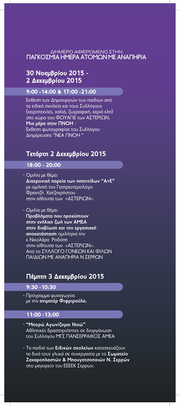 Από το ΣΎΛΛΟΓΟ ΓΟΝΕΩΝ ΚΑΙ ΦΙΛΩΝ  ΠΑΙΔΙΩΝ ΜΕ ΑΝΑΠΗΡΙΑ Ν. ΣΕΡΡΩΝ