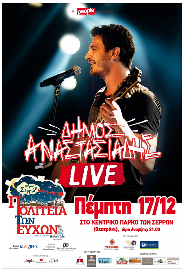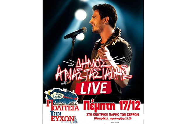 Φτιάξτε διάθεση...κανονίστε παρέα...και ετοιμαστείτε, για το πιο όμορφο χριστουγεννιάτικο πάρτυ!!! Ο μοναδικός, Δήμος Αναστασιάδης ερχεται για μια αξέχαστη βραδιά με όλες τις μεγάλες επιτυχίες του αλλά και άλλα πολλά αγαπημένα τραγούδια!!!