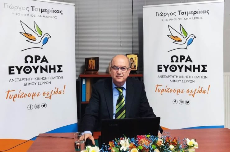 Όταν αναφέρει ότι ο Υποψήφιος Δήμαρχος κ. Γεώργιος Τσιμερίκας είναι “νέος στα δημοτικά”, είμαστε υποχρεωμένοι να του υπενθυμίσουμε ότι ο Επικεφαλής της Ανεξάρτητης Κίνησης Πολιτών Δήμου Σερρών “Ώρα Ευθύνης” διετέλεσε Δημοτικός Σύμβουλος και Πρόεδρος της ΔΕΥΑΣ εν αντιθέσει με τον ίδιο, που εκλέχθηκε δήμαρχος, χωρίς ποτέ να έχει υπηρετήσει το θεσμό της Αυτοδιοίκησης, ούτε καν ως Δημοτικός Σύμβουλος.