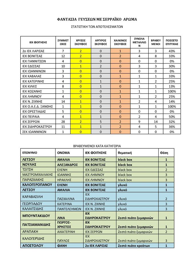 Αναλυτικά οι συμμετοχές ανά ΙΕΚ ήταν:
