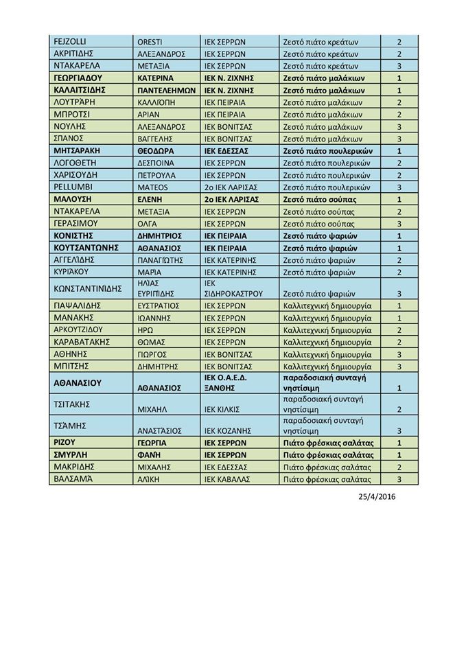 Με μεγάλη επιτυχία (τόσο από πλευράς συμμετοχών, όσο και από πλευράς οργάνωσης) πραγματοποιήθηκε το Σαββατοκύριακο 23/24 Απριλίου ο 1ος πανελλήνιος διαγωνισμός σπουδαστών αρχιμαγείρων ΙΕΚ που διοργανώθηκε από το Επιμελητήριο Σερρών και το Δημόσιο ΙΕΚ Σερρώνμε την έγκριση της Γενικής Γραμματείας δια Βίου Μάθησης. Η διοργάνωση πραγματοποιήθηκε στις εγκαταστάσεις του  Ξενοδοχείου “Elpida resort & Spa” στη Κοιλάδα των Αγίων Αναργύρων.